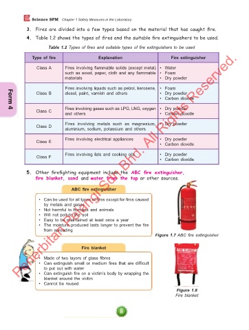 4. Table 1.2 shows the types of fires and the suitable fire extinguishers to be used.