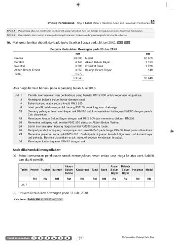 26 Menjual perabot lama yang mempunyai nilai buku RM540 pada harga RM400. Hasil jualan dibankkan.