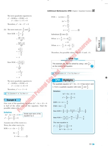 Additional Mathematics SPM Chapter 2 Quadratic Functions
