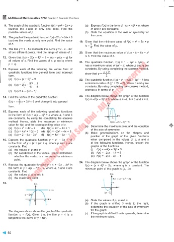 9. The graph of the quadratic function f(x) = px – 2x + p (a) Express f(x) in the form of –(x + m) + n, where