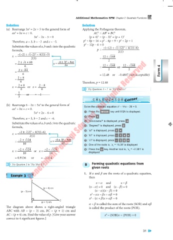 Substitute the values of a, b and c into the quadratic 3: ‘Unknowns?’ is displayed, press