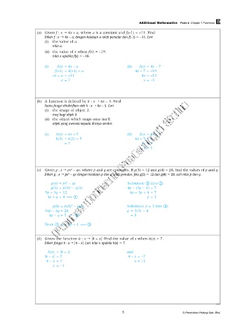 (d) Given the function h : x → 4 – x. Find the value of x when h(x) = 7.
