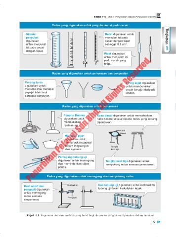 Rajah 1.3 Kegunaan dan cara melukis yang betul bagi alat radas yang biasa digunakan dalam makmal