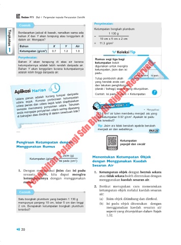 2 cm. Berapakah ketumpatan bongkah plumbum menggunakan kaedah sesaran air