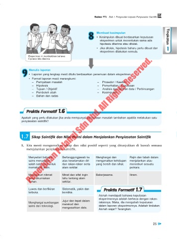 1.7 Sikap Saintifik dan Nilai Murni dalam Menjalankan Penyiasatan Saintifik