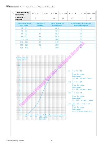 Time (minutes) Frequency Upper boundary Cumulative frequency