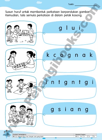 Susun huruf untuk membentuk perkataan berpandukan gambar.