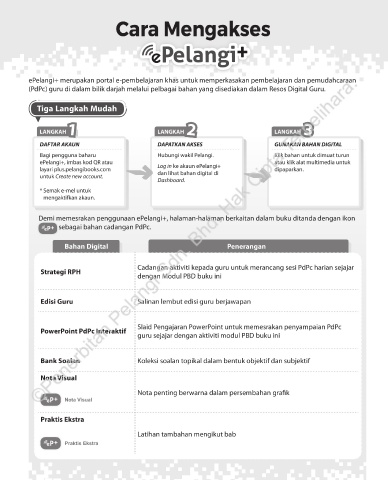 Demi memesrakan penggunaan ePelangi+, halaman-halaman berkaitan dalam buku ditanda dengan ikon