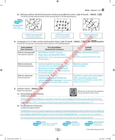 4. Lengkapkan ciri-ciri dan contoh untuk polimer dalam rajah di bawah. SP 4.1.2 TP2 TP3 KBAT Mengaplikasi