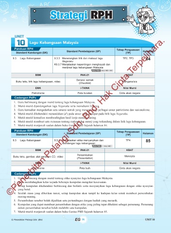 9.3 Lagu Kebangsaan 9.3.4 Menjelaskan etika menyanyikan dan TP4 85