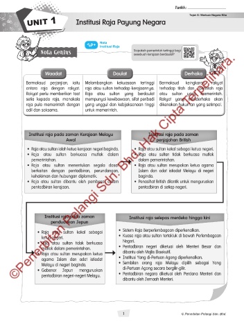 UNIT 1 Institusi Raja Payung Negara Tajuk 6: Warisan Negara Kita