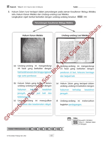 3. Hukum Islam turut terdapat dalam perundangan pada zaman Kesultanan Melayu Melaka,
