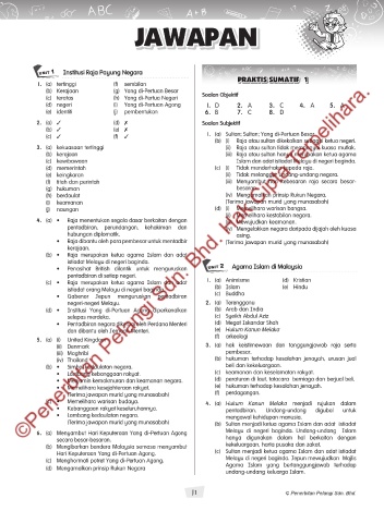 (d) negeri (i) Yang di-Pertuan Agong 1. D 2. A 3. C 4. A 5. A