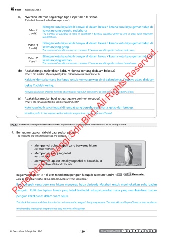 Bagaimanakah ciri-ciri di atas membantu penguin hidup di kawasan tundra? TP 4 KBAT Menganalisis