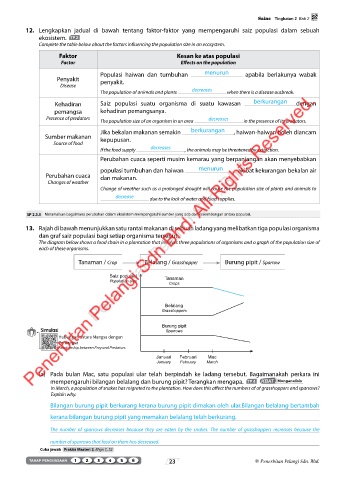 13. Rajah di bawah menunjukkan satu rantai makanan di sebuah ladang yang melibatkan tiga populasi organisma