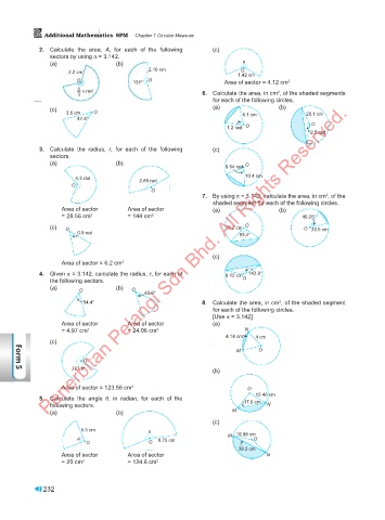 7. By using π = 3.142, calculate the area, in cm , of the
