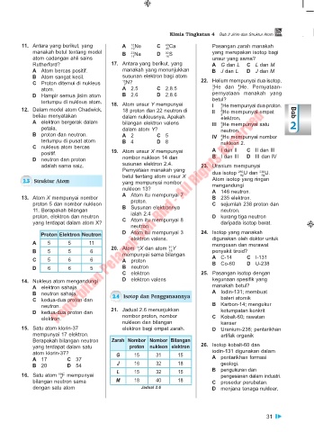 15. Satu atom klorin-37 elektron bagi empat zarah. D Uranium-238; pentarikhan