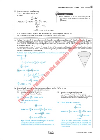 A = 4pj 2 • Peratus perubahan dalam luas permukaannya ialah