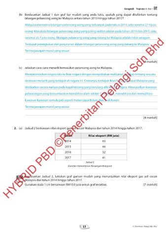 2. (a) Jadual 2 berkenaan nilai eksport gas asli cecair Malaysia dari tahun 2014 hingga tahun 2017.