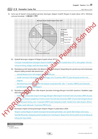 4. Carta pai di bawah menunjukkan peratus barangan eksport terpilih Negara X pada tahun 2015. Tafsirkan