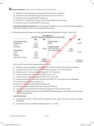 Anda dikehendaki menyediakan Penyata Kedudukan Kewangan pada 31 Oktober 2020 (Semua pengiraan