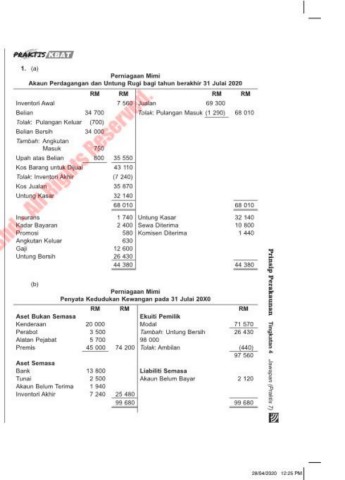 Akaun Perdagangan dan Untung Rugi bagi tahun berakhir 31 Julai 2020