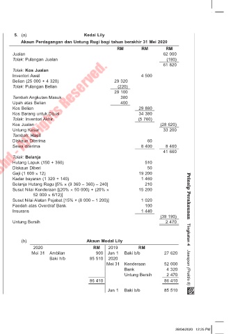 Penyata Kedudukan Kewangan pada 30 Jun 2020 Akaun Perdagangan dan Untung Rugi bagi tahun berakhir 31 Mei 2020