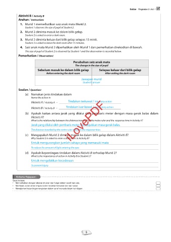 (c) Mengapakah Murid 2 diminta masuk ke dalam bilik gelap dalam Aktiviti B?