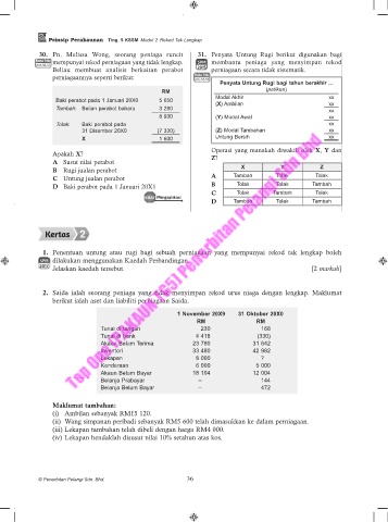 30. Pn. Melissa Wong, seorang peniaga runcit 31. Penyata Untung Rugi berikut digunakan bagi