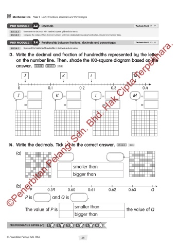 14. Write the decimals. Tick (✓) to the correct answer. LS 3.2.3 PL 3