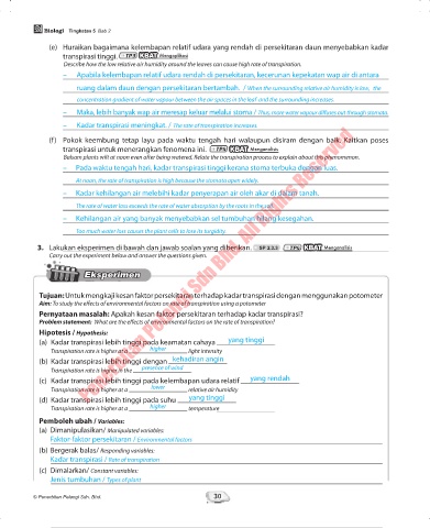 transpirasi untuk menerangkan fenomena ini. TP4 KBAT Menganalisis