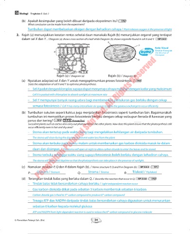 2. Rajah (a) menunjukkan keratan rentas sehelai daun manakala Rajah (b) menunjukkan organel yang terdapat