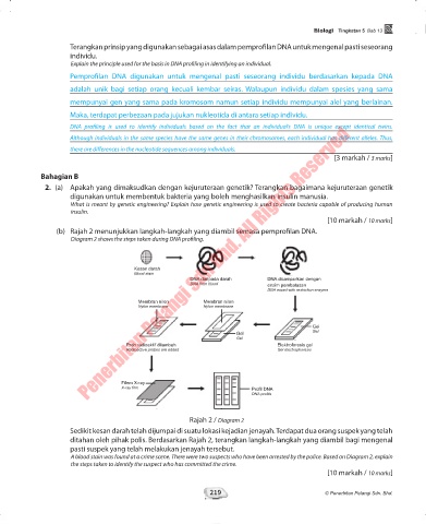 (b) Rajah 2 menunjukkan langkah-langkah yang diambil semasa pemprofilan DNA.