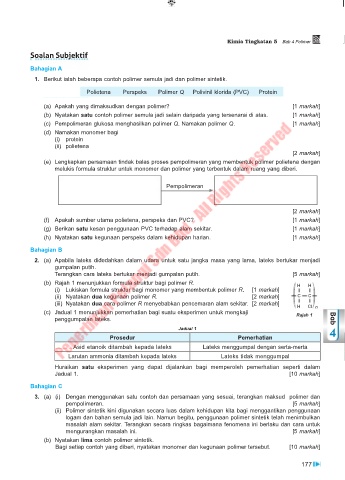melukis formula struktur untuk monomer dan polimer yang terbentuk dalam ruang yang diberi.