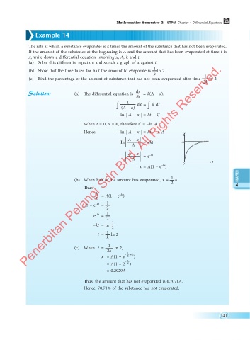 (c) Find the percentage of the amount of substance that has not been evaporated after time ln 2.