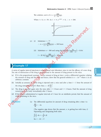 (ii) Substitute n = 100 and using the form ln 1 200 – n 2 = 0.05t