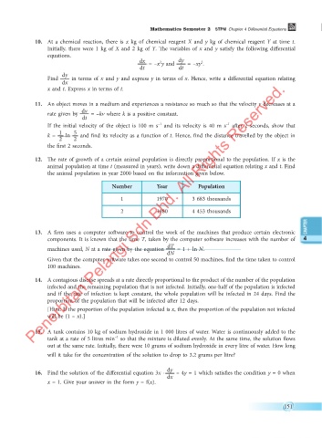 10. At a chemical reaction, there is x kg of chemical reagent X and y kg of chemical reagent Y at time t.