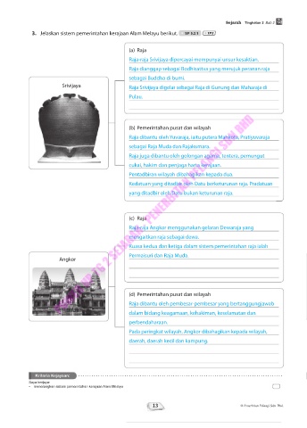 3. Jelaskan sistem pemerintahan kerajaan Alam Melayu berikut. SP 5.2.1 TP3