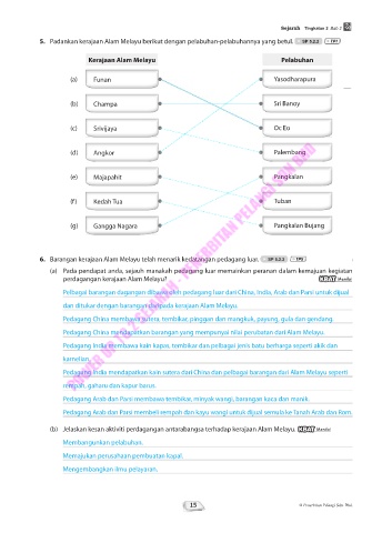6. Barangan kerajaan Alam Melayu telah menarik kedatangan pedagang luar. SP 5.2.2 TP5