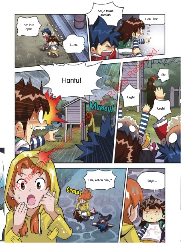 Saya takut. Jomlah! Han...han... Jom lari! Cepat! Penerbitan Pelangi Sdn Bhd. All Rights Reserved. I...itu... Eh! Hantu! Urgh! Muncul Urgh! Hei, kalian okey? Saya... Cemas CS5_BritannicaV3_P08-P79_CH01_BM.indd 11 5/27/19 4:39 PM