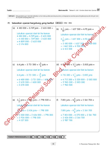 SP 1.2.1 Menyelesaikan ayat matematik melibatkan nombor bulat, pecahan juta dan perpuluhan juta bagi operasi asas dan operasi bergabung tanpa dan dengan tanda