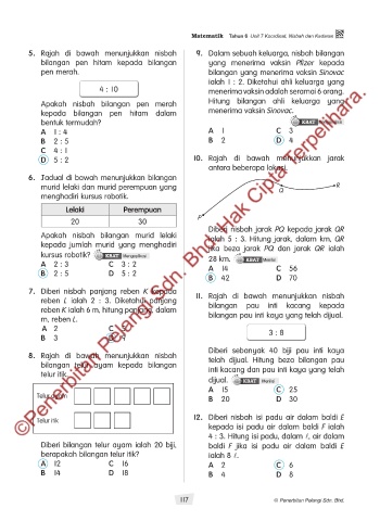 5. Rajah di bawah menunjukkan nisbah 9. Dalam sebuah keluarga, nisbah bilangan