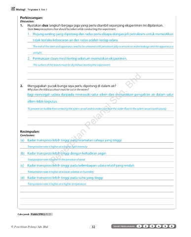 1. Nyatakan dua langkah berjaga-jaga yang perlu diambil sepanjang eksperimen ini dijalankan.