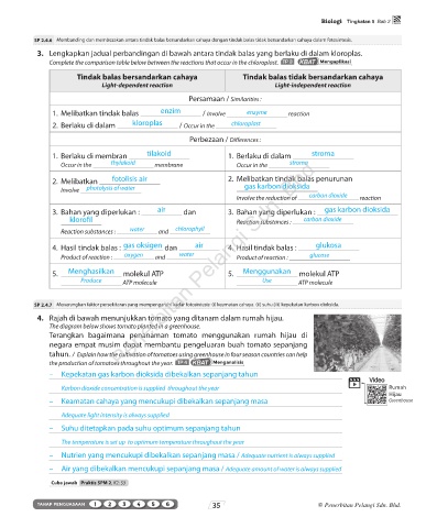 3. Lengkapkan jadual perbandingan di bawah antara tindak balas yang berlaku di dalam kloroplas.