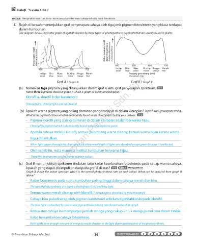 5. Rajah di bawah menunjukkan graf penyerapan cahaya oleh tiga jenis pigmen fotosintesis yang biasa terdapat