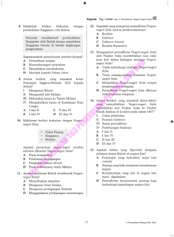 sebelum dibentuk Negeri-negeri Selat? 15. Apakah iktibar yang diperoleh daripada
