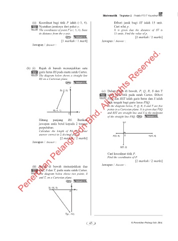 (ii) Koordinat bagi titik P ialah (–3, 4). Diberi jarak bagi ST ialah 15 unit.