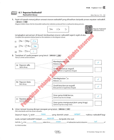 Lengkapkan persamaan di bawah berdasarkan sinaran radioaktif seperti rajah di atas.