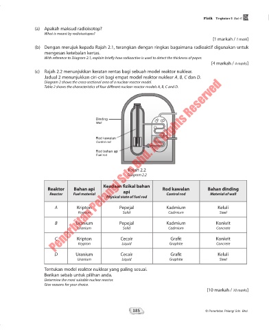 (c) Rajah 2.2 menunjukkan keratan rentas bagi sebuah model reaktor nuklear.