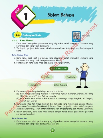 2. Terdapat tiga jenis kata nama, iaitu kata nama khas, kata nama am, dan kata ganti